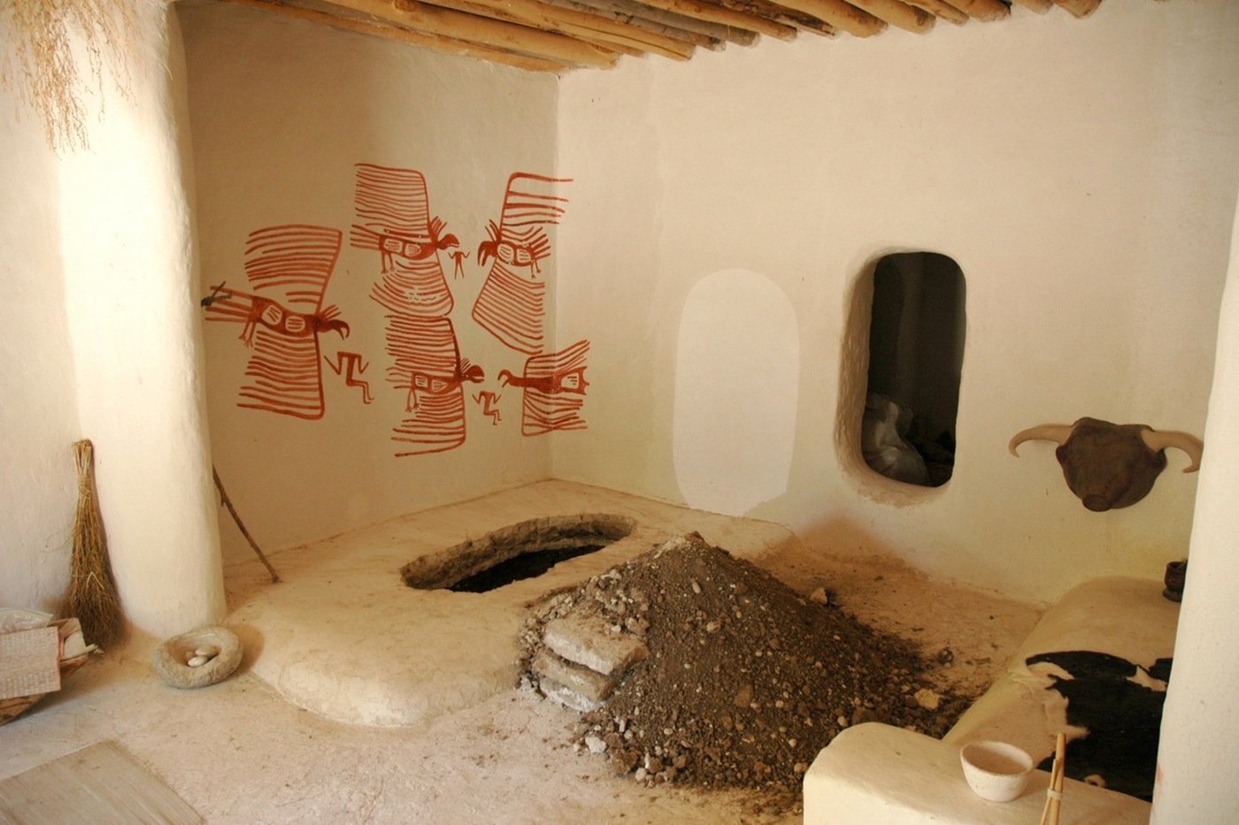 Interiér zrekonstruovaného domu v Çatal Hüyüku s typickým nástěnným uměním. (foto: Flickr, Çatalhöyük, ANVC, CC BY-NC-SA 2.0)
