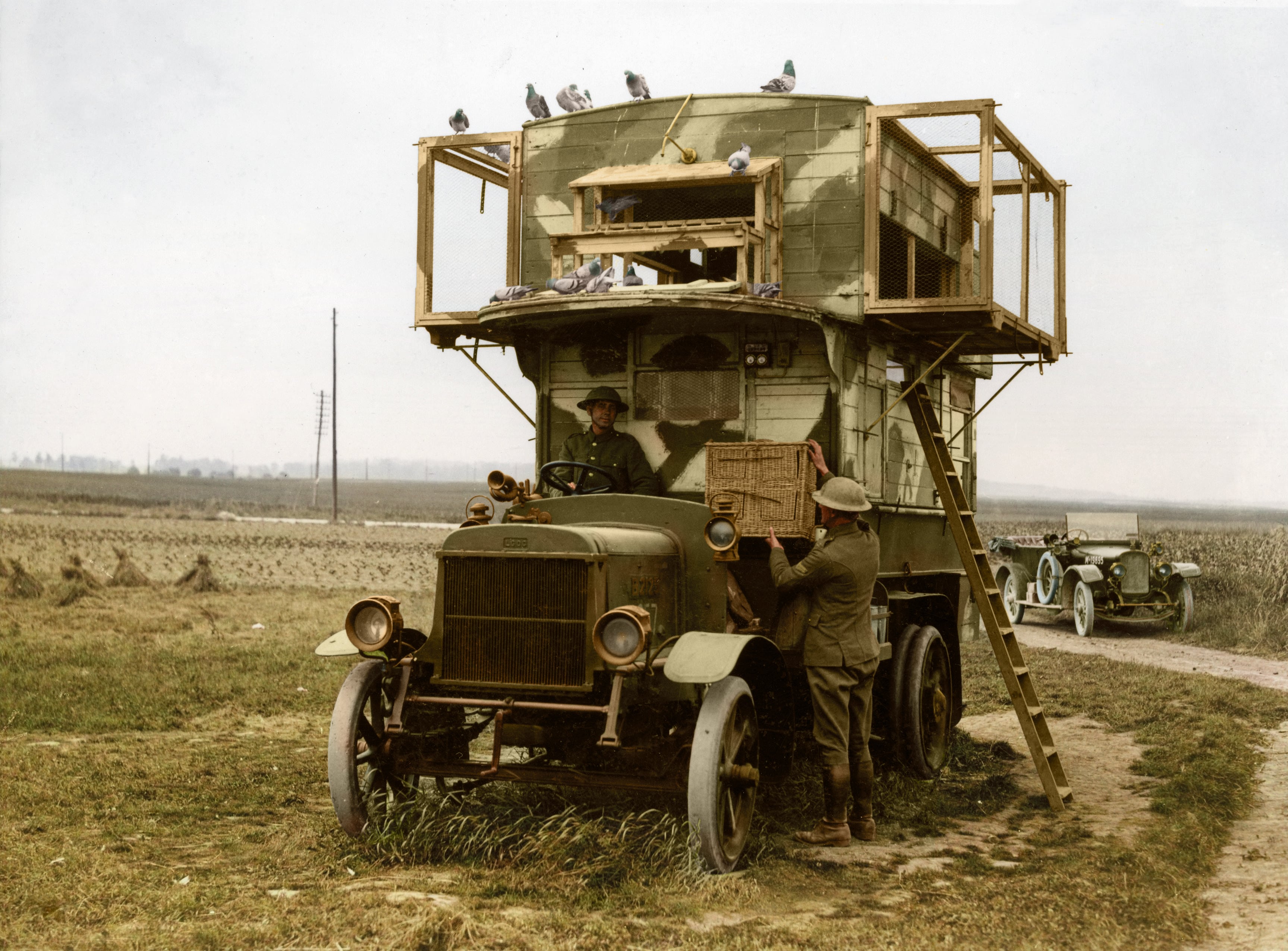 Již v srpnu 1914 britské úřady zrekvírovaly přes 1 000 dvoupatrových autobusů, které následně vyslaly na francouzské bojiště. Tam obvykle plnily funkci přepravních prostředků, několik set jich ale nakonec skončilo jako přestavěné mobilní holubníky. (foto: Profimedia)