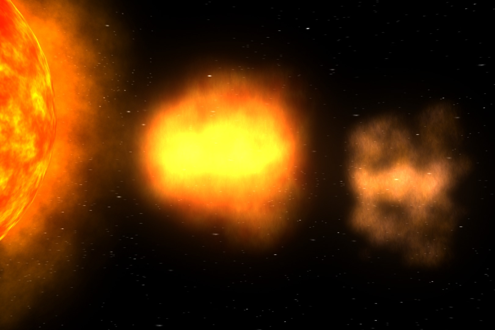 Vizualizace „kanibalského výronu koronální hmoty“. (ilustrace: NASA/Goddard Space Flight Center Conceptual Image Lab, Walt Feimer, CC BY-SA 4.0)