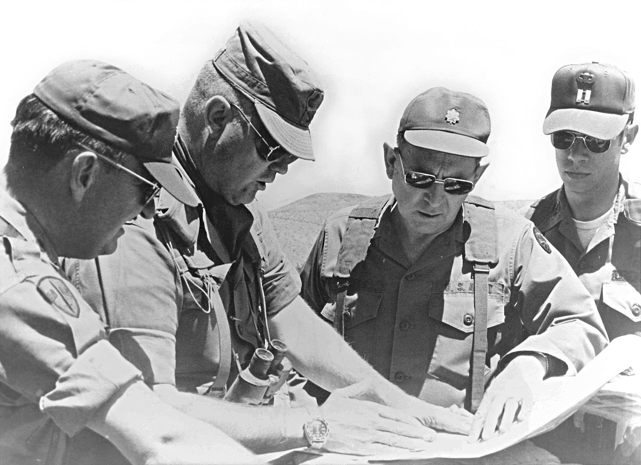 Schwarzkopf (druhý zleva) v hodnosti plukovníka koncem 70. let s americkými důstojníky v Kalifornii. (foto: Wikimedia Commons, Oregon National Guard, CC BY 2.0)
