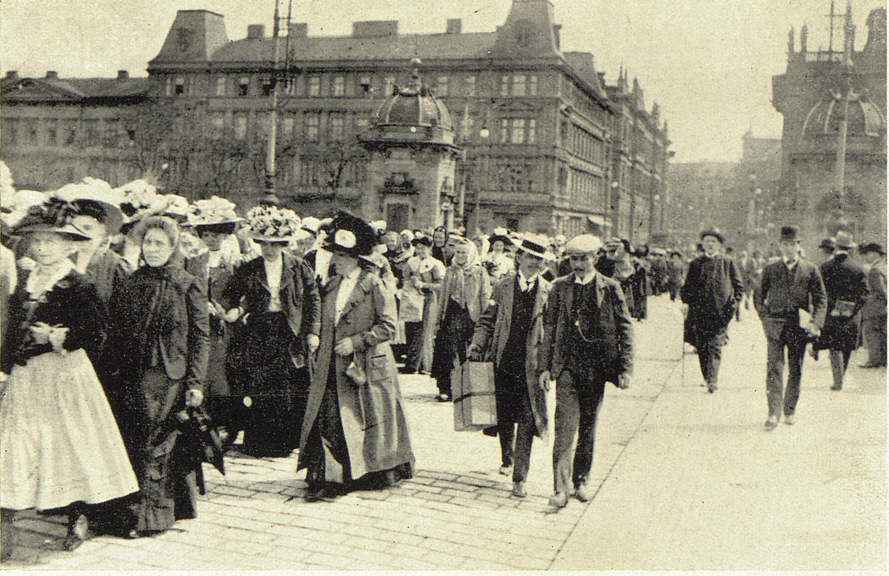 Prvomájový průvod směřující na Střelecký ostrov na mostě císaře Františka I. (dnešní most Legií) roku 1890. (foto: Ústav pro českou literaturu AV ČR (časopis Světozor), CC0)