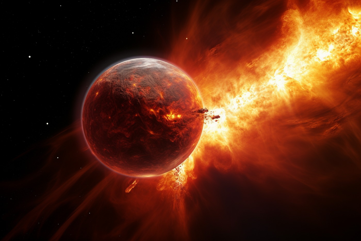 Hmotnost extrémně žhavého hnědého trpaslíka WD0032-317B se podle vědců pohybuje okolo 75–88 Jupiterů, což z něj dělá jednoho z nejhmotnějších známých hnědých trpaslíků. (ilustrace: Midjourney AI, CC0)