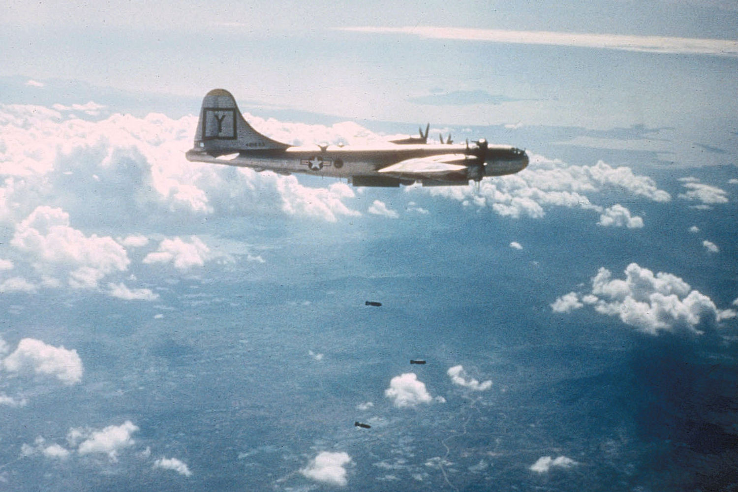 Bombardér B-29 Superfortress kdesi nad Koreou. Z podobného vyskočila také první skupina výsadkářů. (foto: Wikimedia Commons, U.S. Air Force, CC0)