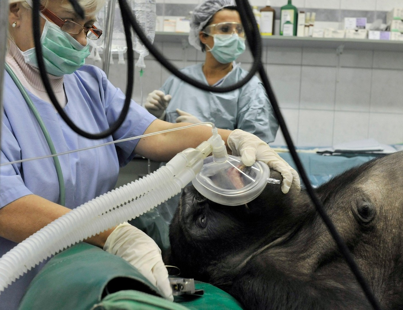 V roce 2009 podstoupila gorila Liesel náročné gynekologické vyšetření, během kterého strávila čtyři hodiny v celkové narkóze. Snímek pochází z této operace. (foto: Profimedia)