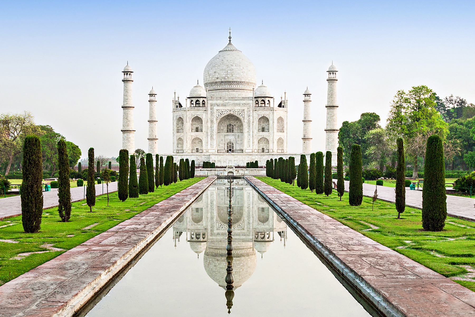 Monumentální mauzoleum vyrůstalo dvaadvacet let. Jeho odraz v přilehlé vodní ploše mění barvu podle denní doby. (foto: Shutterstock)