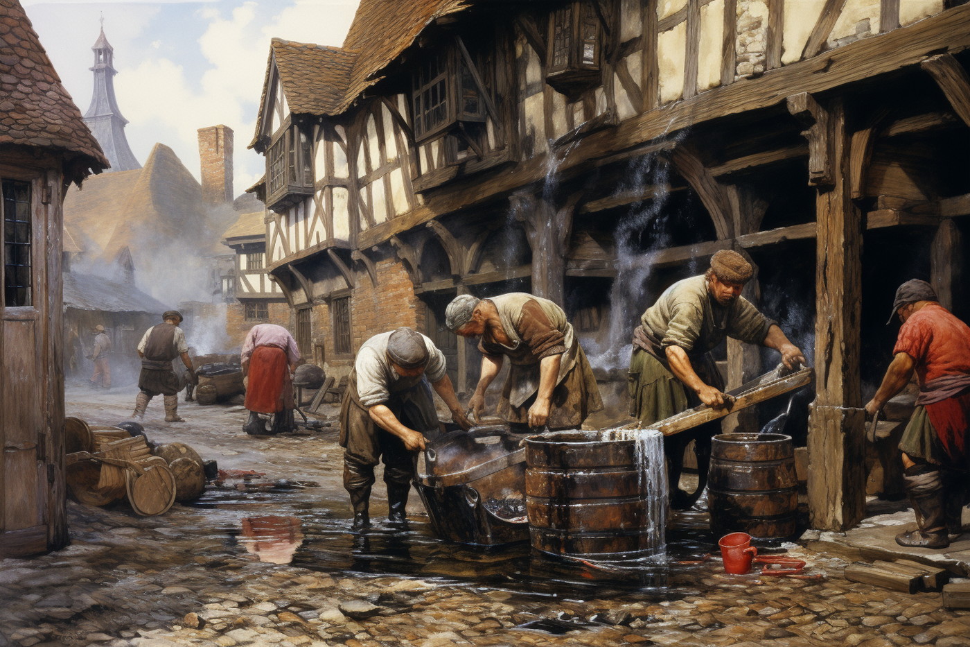 Úhoři sehrávali v národním hospodářství středověké Anglie zásadní roli. Poptávku po lahodných a přitom postních úhořích držely hlavně kláštery a opatství. (ilustrace: Midjourney AI, CC0)