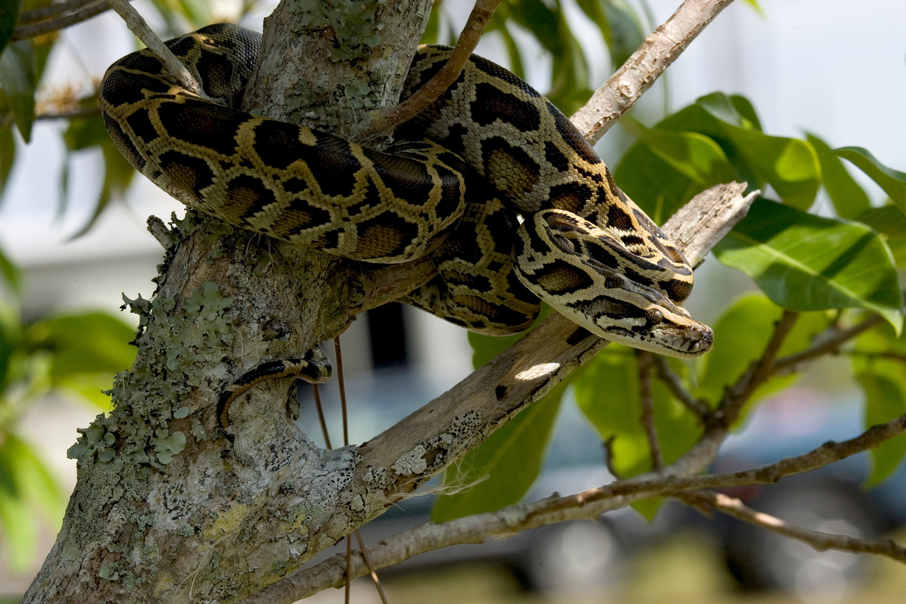 Invazní krajta tmavá ve floridském Národním parku Everglades.