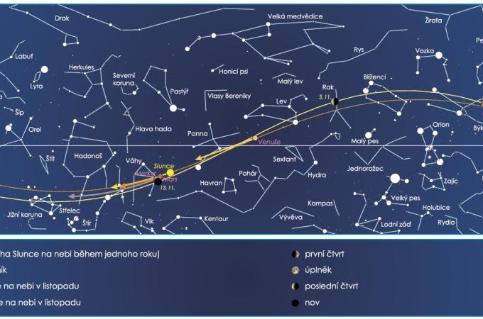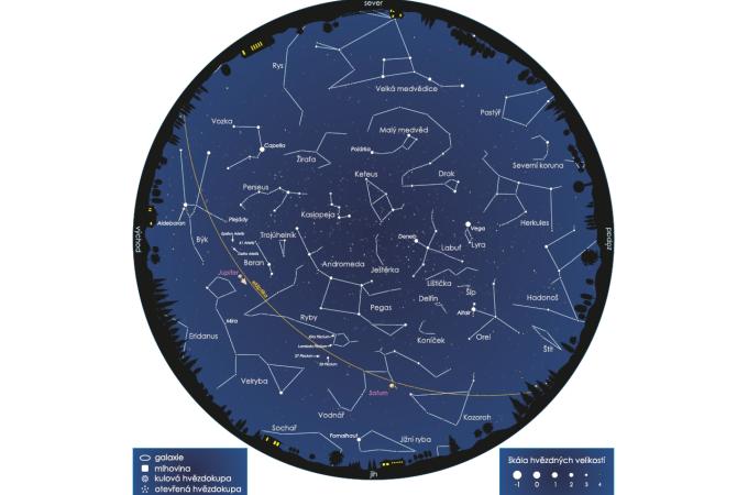 Noční obloha v listopadu: Stínohra na Jupiteru a vzdálený Uran s Neptunem