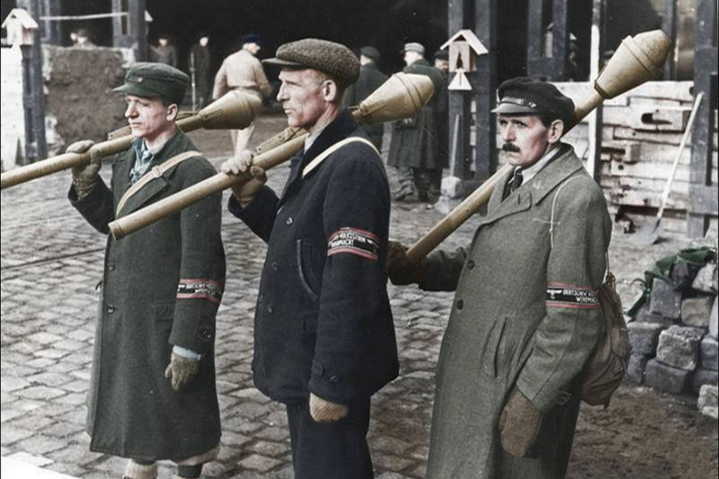 Příslušníci Volkssturmu s Panzerfausty v Berlíně, březen 1945. (foto: Wikimedia Commons, Bundesarchiv, CC BY-SA 4.0)