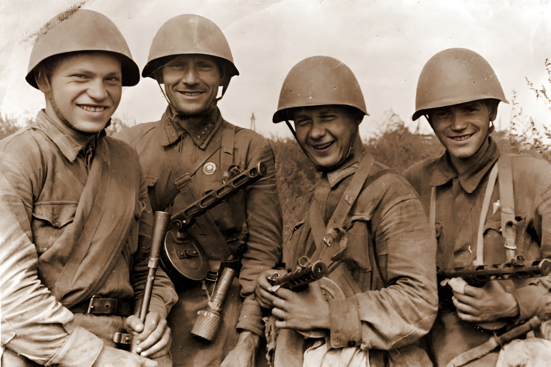 Sovětští vojáci v přilbách SŠ-39 a SŠ-40.