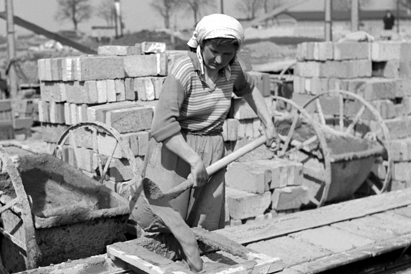 Zednička na staveništi Nové hutě Klementa Gottwalda.