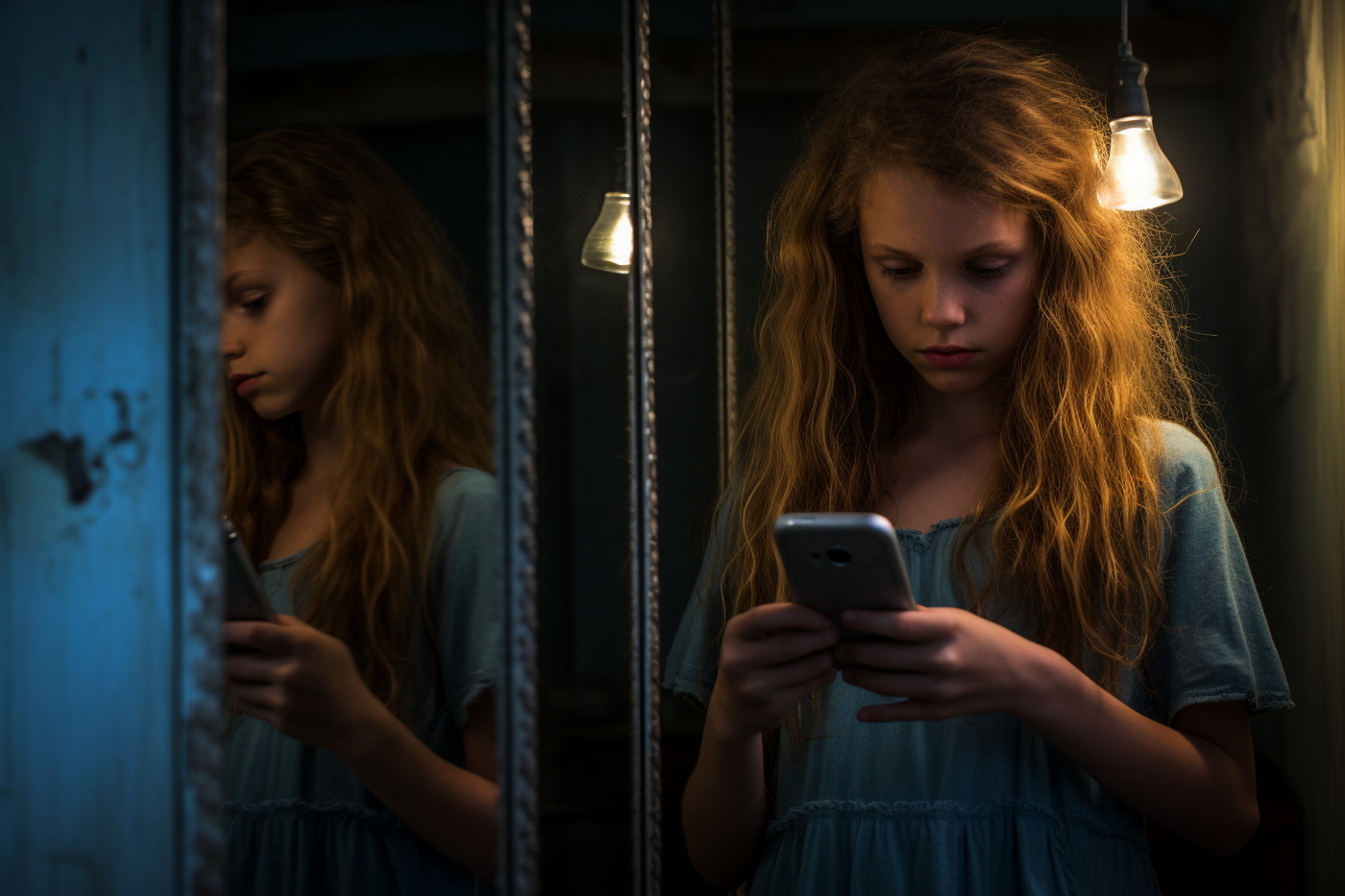 Nomofobie ohrožuje všechny věkové skupiny. Nejvíce tato porucha ale postihuje adolescenty, hlavně dospívající ve věku 14–16 let. (ilustrace: Midjourney AI, PDM 1.0)
