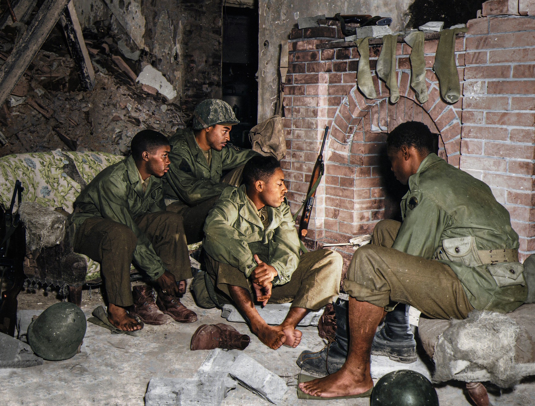 Trojice amerických vojáků si suší nohy a ponožky během tažení Itálií. (foto: Wikimedia Commons, Julius Jääskeläinen, CC BY 2.0)