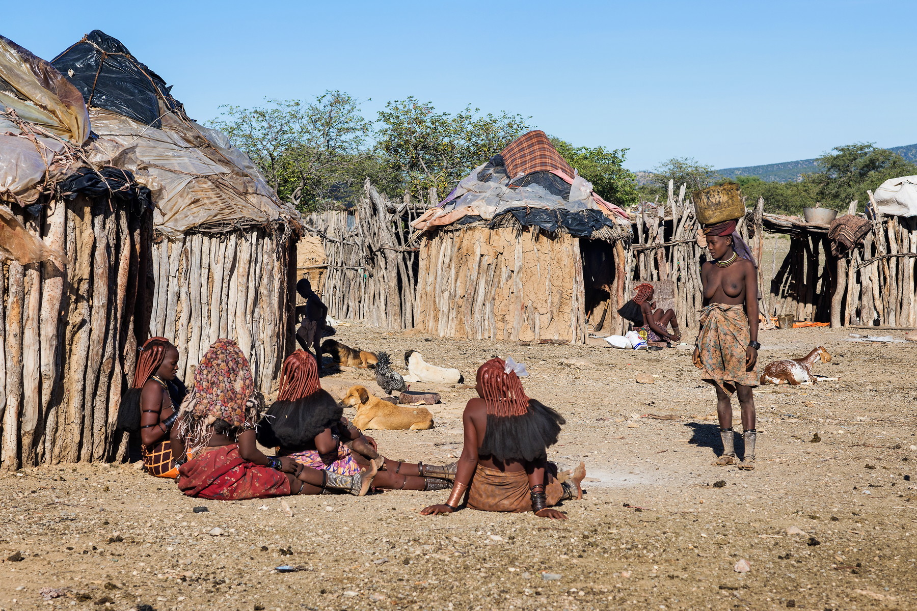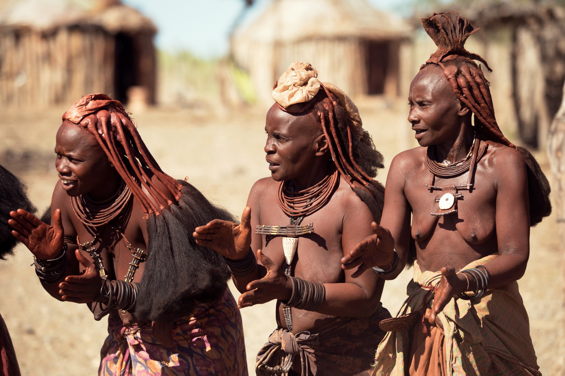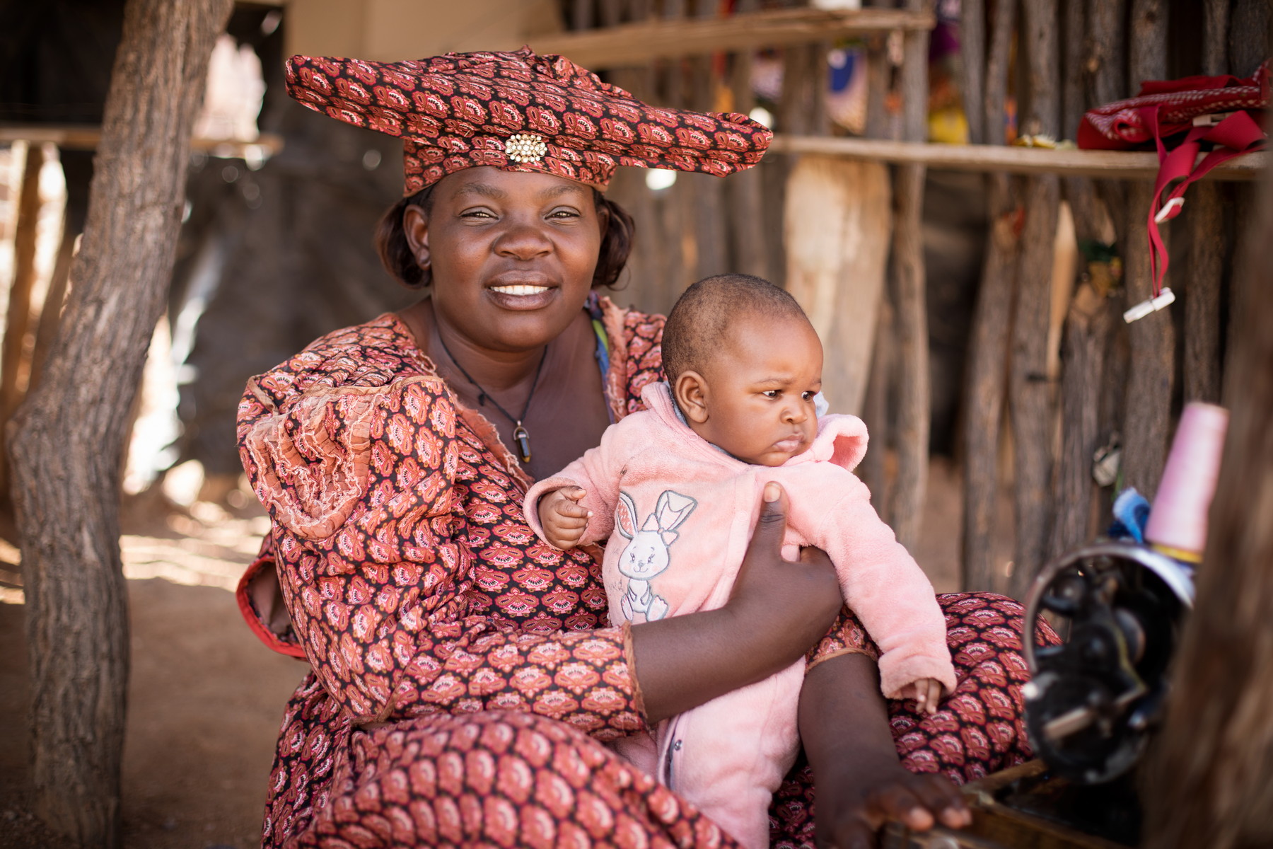 Zatímco ženy kmene Himba jsou pyšné na svá těla zdobená červenou pastou, dámy z etnika Herero – jež s nimi často sdílejí místo pro stánky a sem tam i veselé historky – se vydaly jinou módní cestou: Po vzoru manželek německých kolonizátorů se počátkem 20. století začaly halit do pestrobarevných látek. (foto: Martina Grmolenská a Milan Sekanina - se souhlasem k publikování)