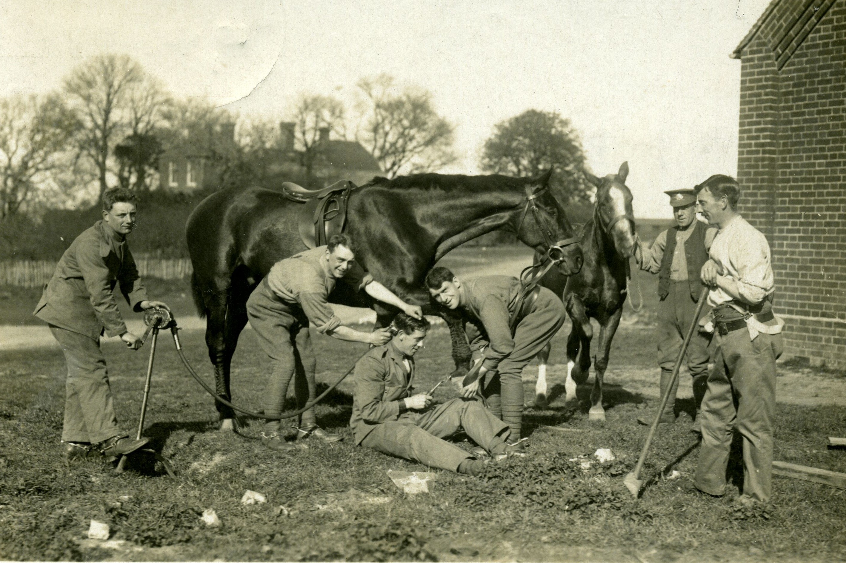 Státy Dohody spoléhaly na dodávky tažných zvířat ze Spojených států. Zde péče o zvířata v podání britských vojáků. (foto: Wikimedia Commons, Fred C. Palmer, PDM 1.0)