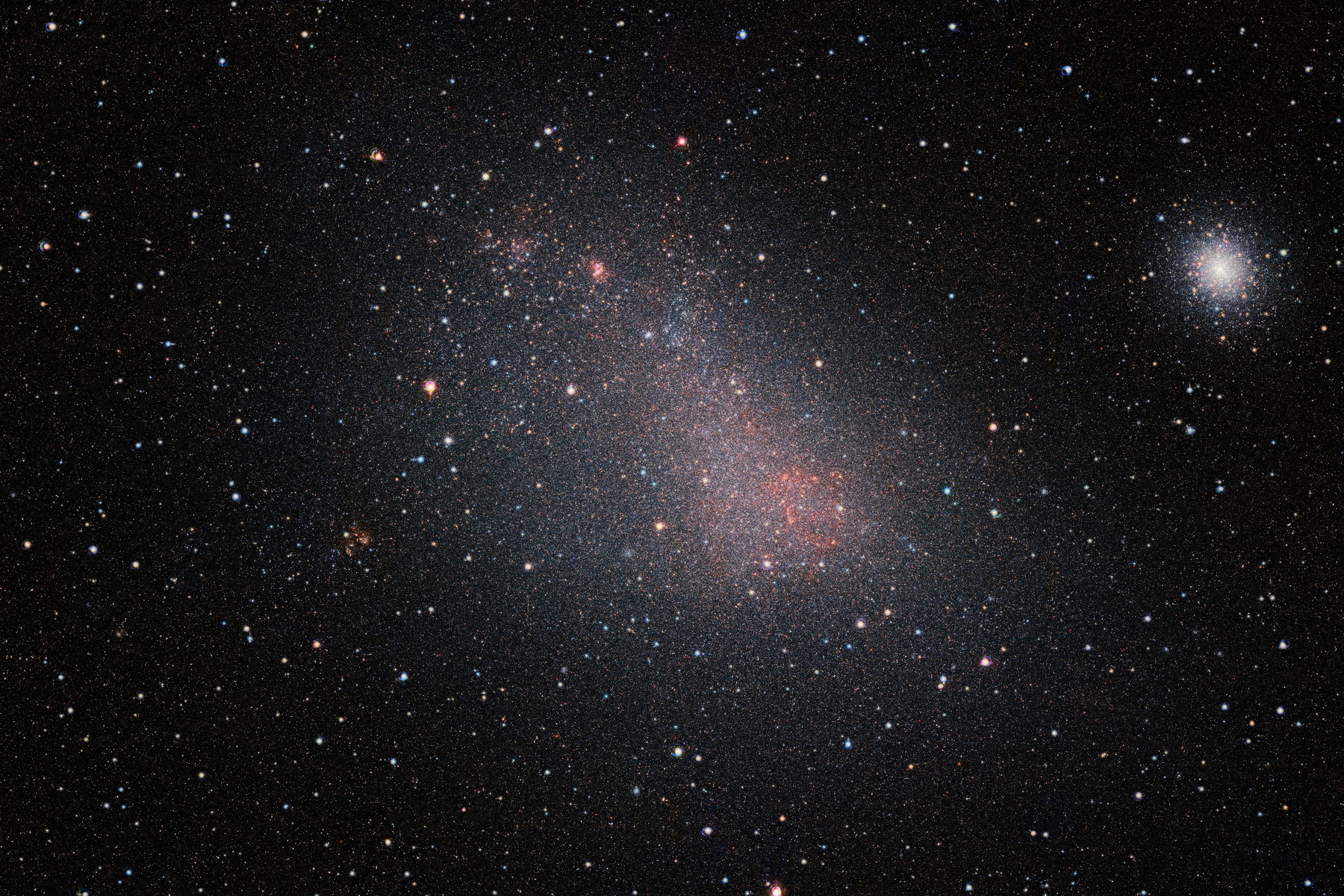 Malý Magellanův oblak. Podle vědců jde ve skutečnosti o dvě galaxie, nacházející se z našeho pohledu v dokonalém zákrytu. (foto: Wikimedia Commons, ESO/VISTA VMC, CC BY-SA 4.0)
