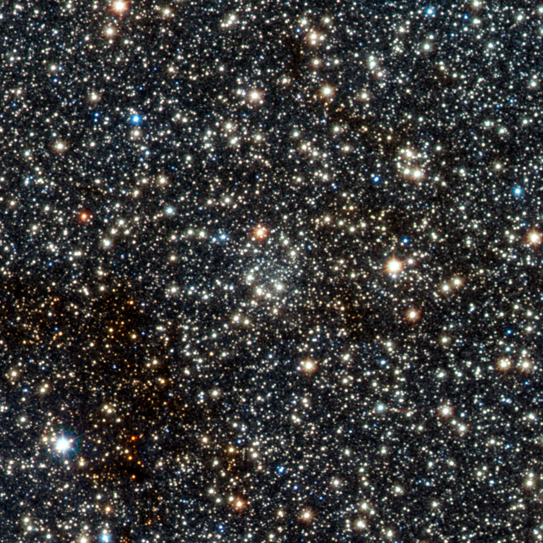 Uprostřed snímku teleskopu VISTA se nachází málo zřetelná kulová hvězdokup VVV CL002. (foto: ESO/D. Minniti/VVV Team, CC BY-SA 4.0)
