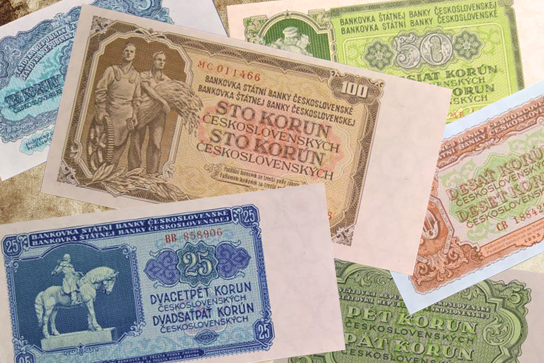 Návrhy bankovek v hodnotách od 25 korun pocházely z dílny československých umělců, nižší hodnoty dodali soudruzi ze Sovětského svazu. (foto: Profimedia)