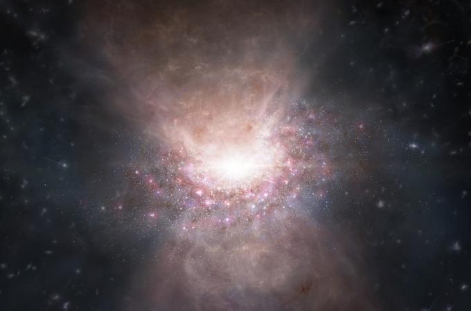 Soustava ALMA pozorovala molekulární výtrysk velmi vzdáleného kvazaru