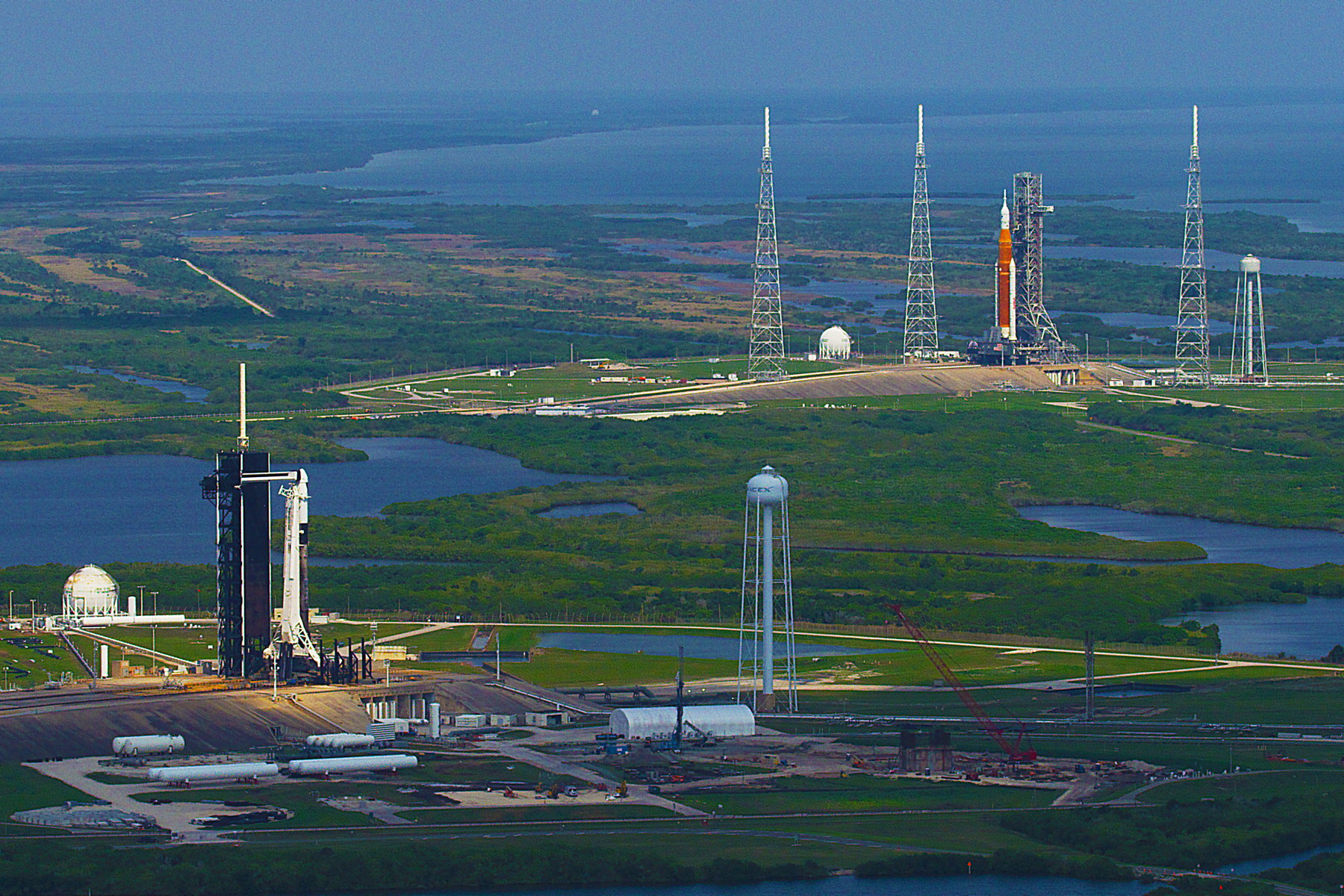 Stávající podoba ramp komplexu 39: Z „áčka“ v popředí létají rakety Falcon, z „béčka“ pak SLS. (foto: NASA/Jamie Peer, PDM 1.0)