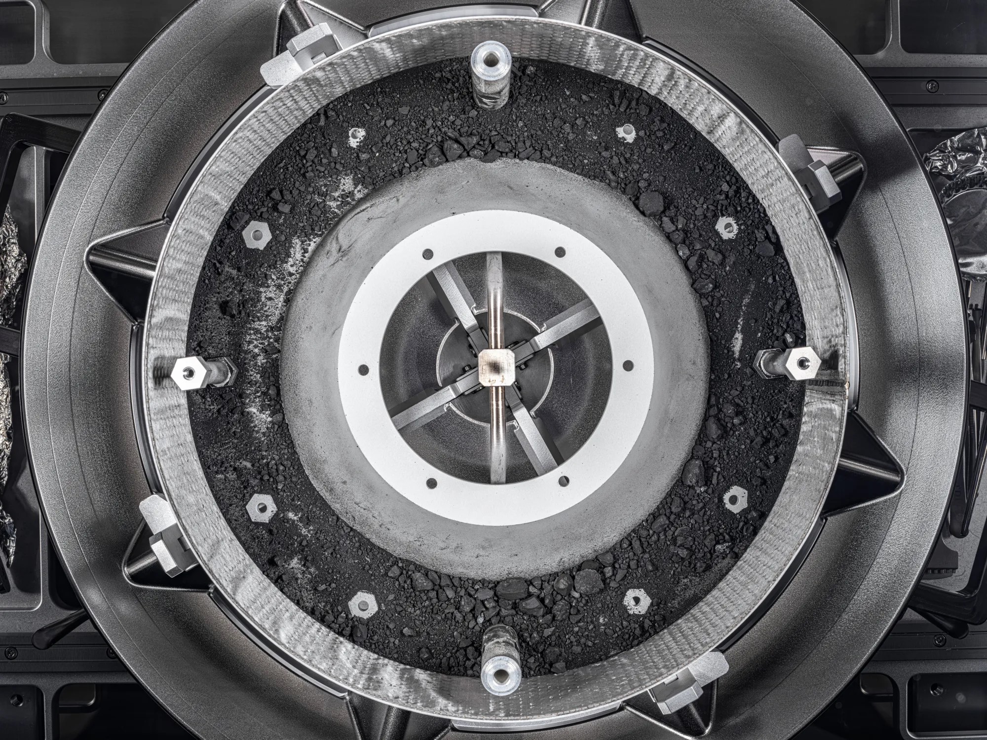Materiál dovezený na Zemi z planetky Bennu. (foto: NASA/Erika Blumenfeld, Joseph Aebersold, CC BY-SA 4.0)