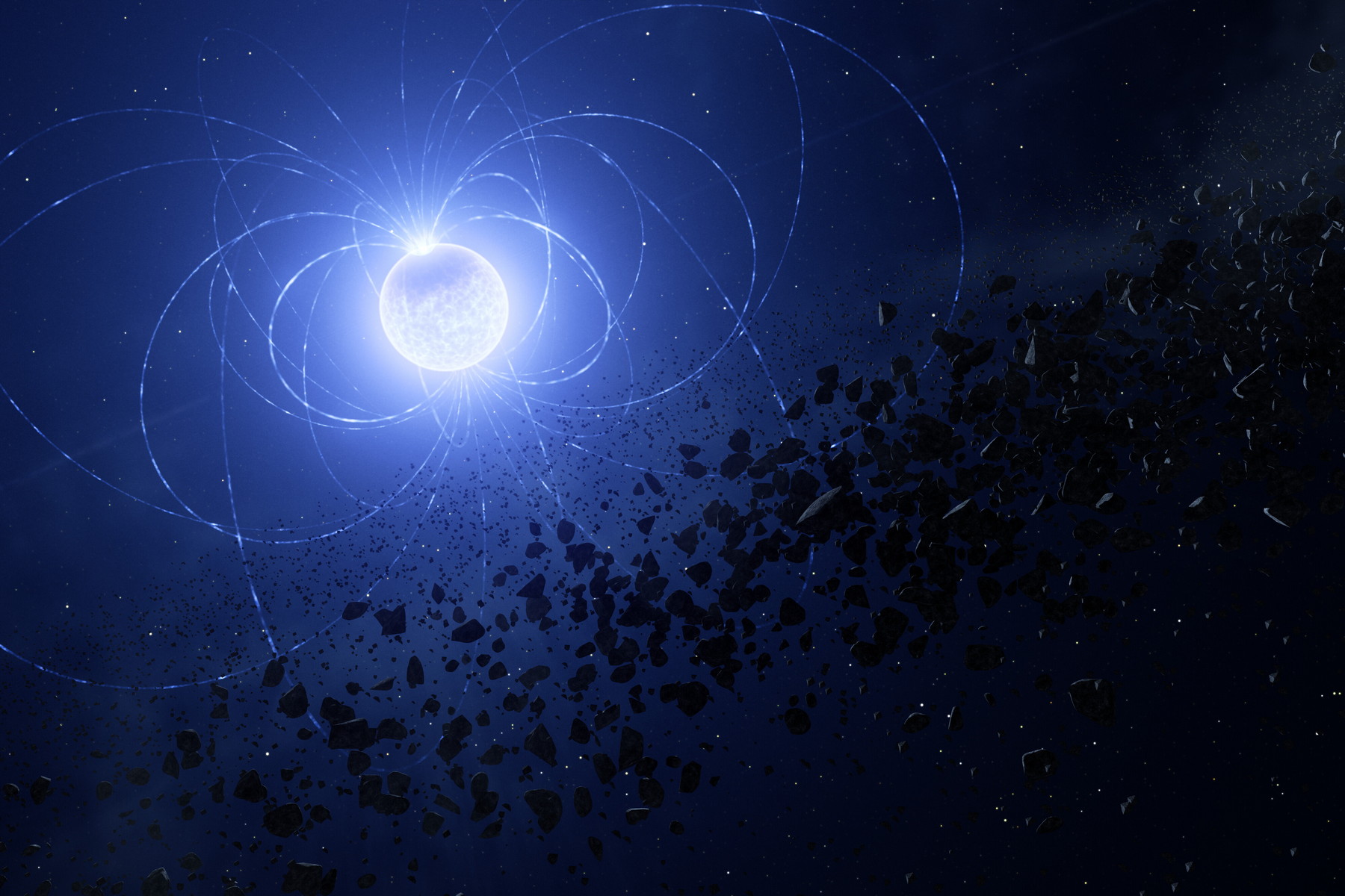 Vizualizace bílého trpaslíka WD 0816-310 s kovovou jizvou.