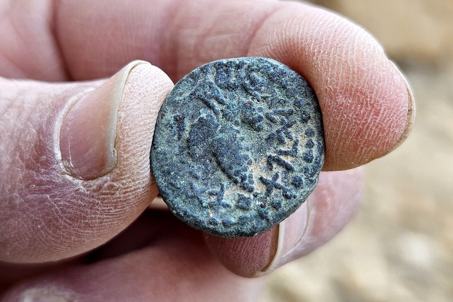 Jedna z nalezených mincí s hebrejským nápisem „rok první vykoupení Izraele“. (foto: Israel Antiquities Authority, Oriya Amichay, CC BY 4.0)