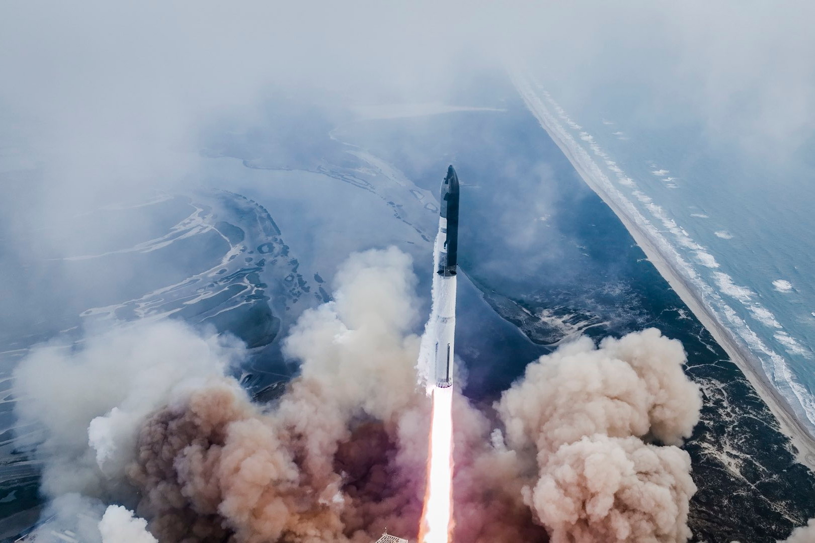 Start Starship Super Heavy z texaské základny SpaceX.