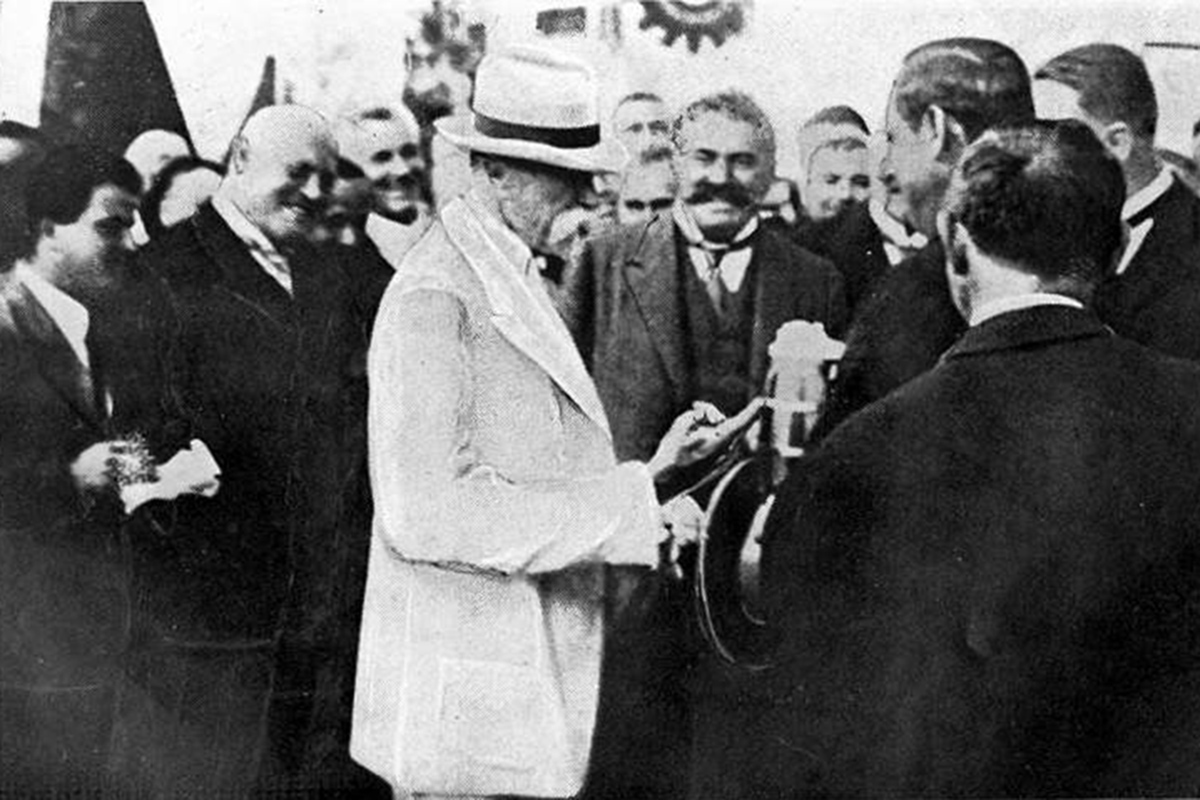 Masaryk byl členem Československého abstinentního svazu od roku 1929. V červnu 1930 byl pozván na zahájení pivovarnické výstavy v Brně. Připravený fotograf chtěl prezidenta zvěčnit s půllitrem v ruce, nicméně štěstí neměl – prezident podávaný korbel ani nevzal do ruky, jen prstem prohrábl pěnu. (foto: Muzeum města Brna, CC BY 4.0)