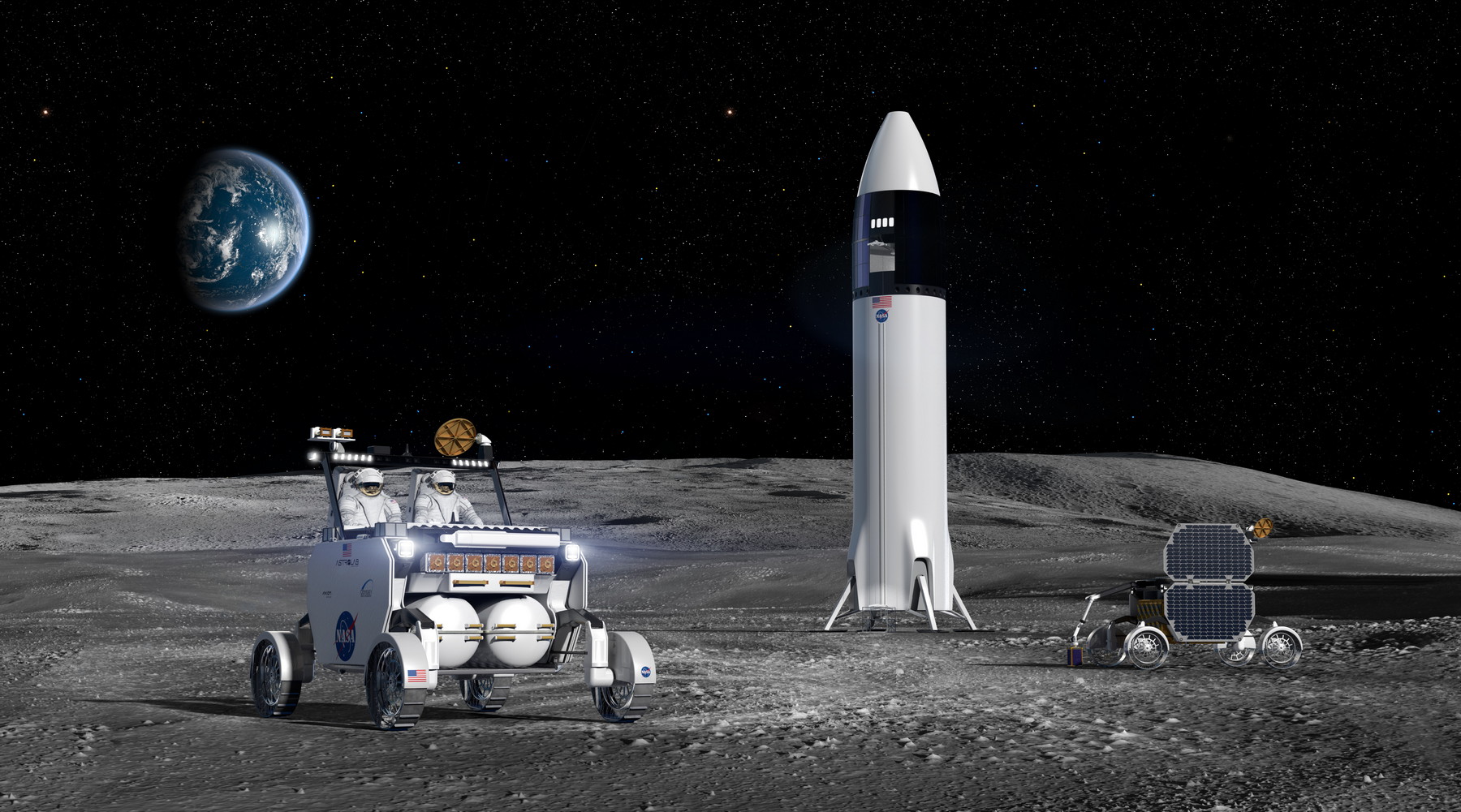 Umělecký návrh konceptu lunárního terénního vozidla NASA. (zdroj: NASA, CC BY 4.0)