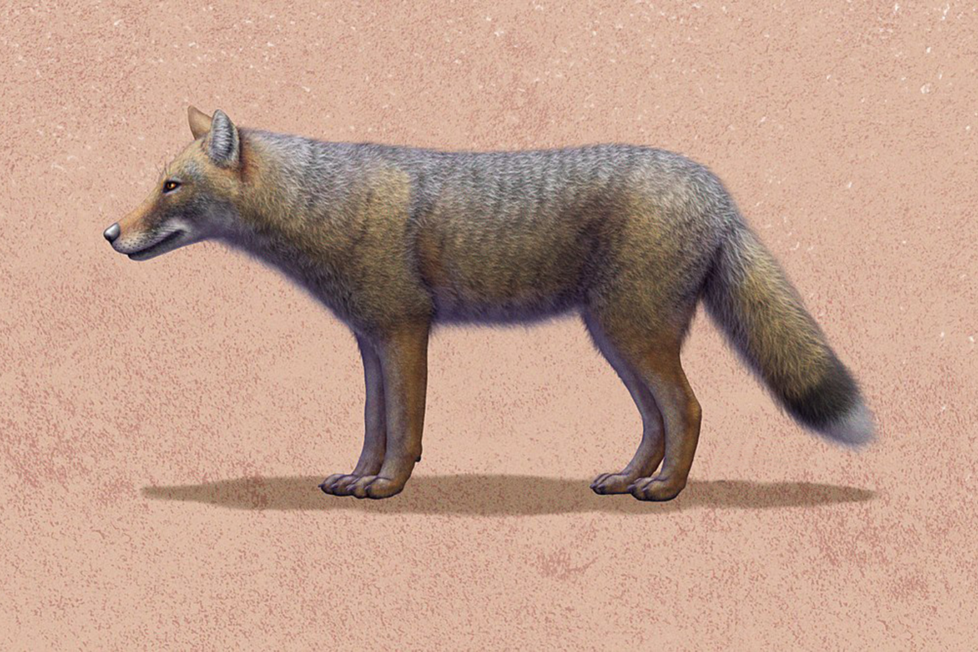 Dnes již vyhynulá jihoamerická „falešná liška“ Dusicyon avus. (ilustrace: Wikimedia Commons, Juandertal, CC BY-SA 4.0)