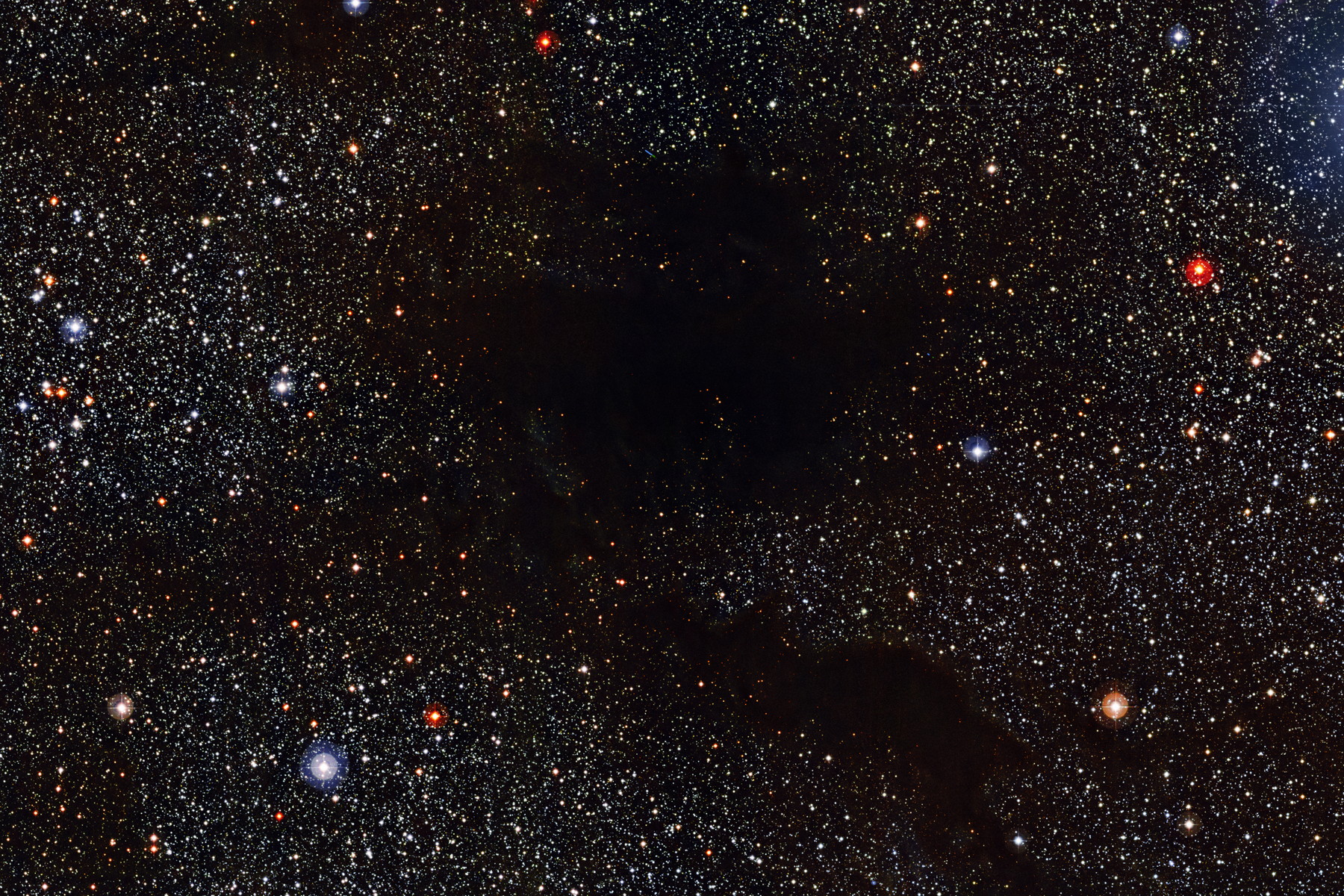 V souhvězdí Pastýře nebo třeba v souhvězdí Eridanu se nacházejí oblasti tzv. superprázdnoty. Na snímku temný oblak Lupus 4. (ilustrační foto: ESO, CC BY-SA 4.0)