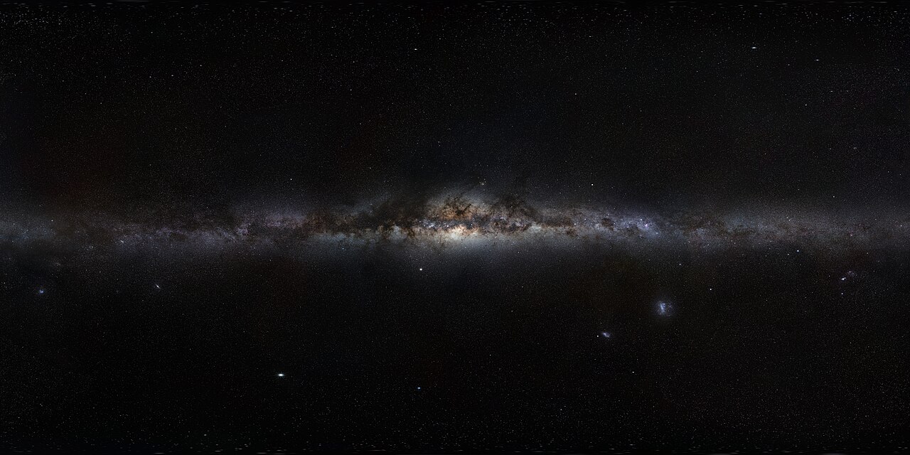 Panoramatický pohled na Mléčnou dráhu, sestavený ze snímků Evropské jižní observatoře. (foto: Wikimedia Commons, ESO/S. Brunier, CC BY-SA 4.0)