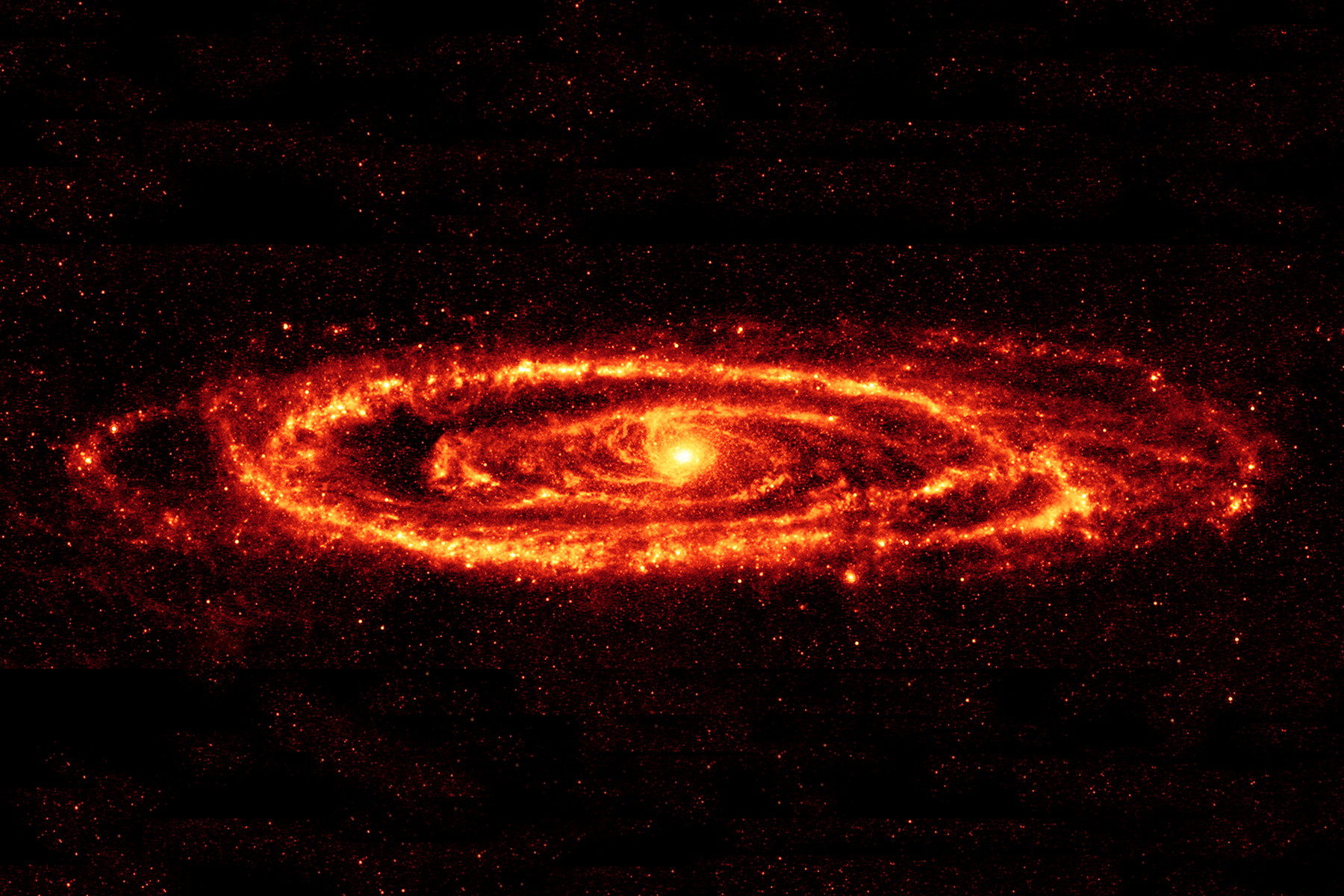 Galaxie v Andromedě pohledem infračerveného Spitzerova vesmírného dalekohledu. (foto: NASA/JPL-Caltech/University of Arizona, CC BY 4.0)