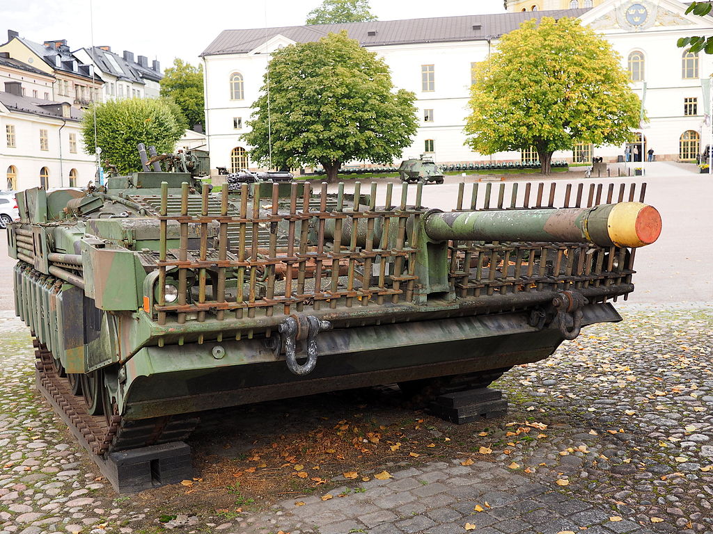 Nejmodernější verze Strv 103 C se od předchůdců na první pohled lišila také čelní bariérou proti kumulativním střelám