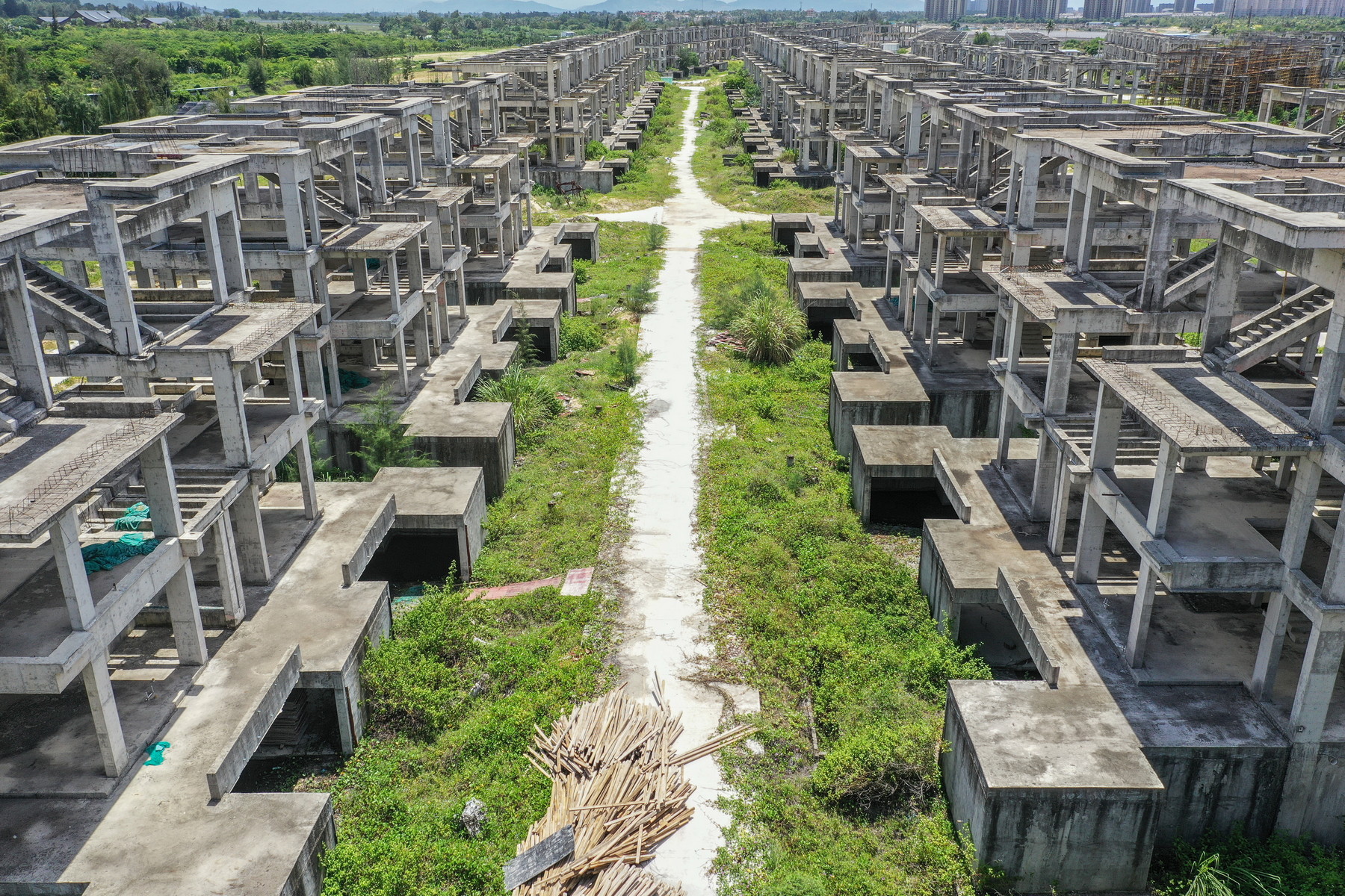 Developerský boom vedl v Číně ke vzniku obřích bytových komplexů. Mnohé dnes leží ladem v nedokončeném stavu. (foto: Profimedia)
