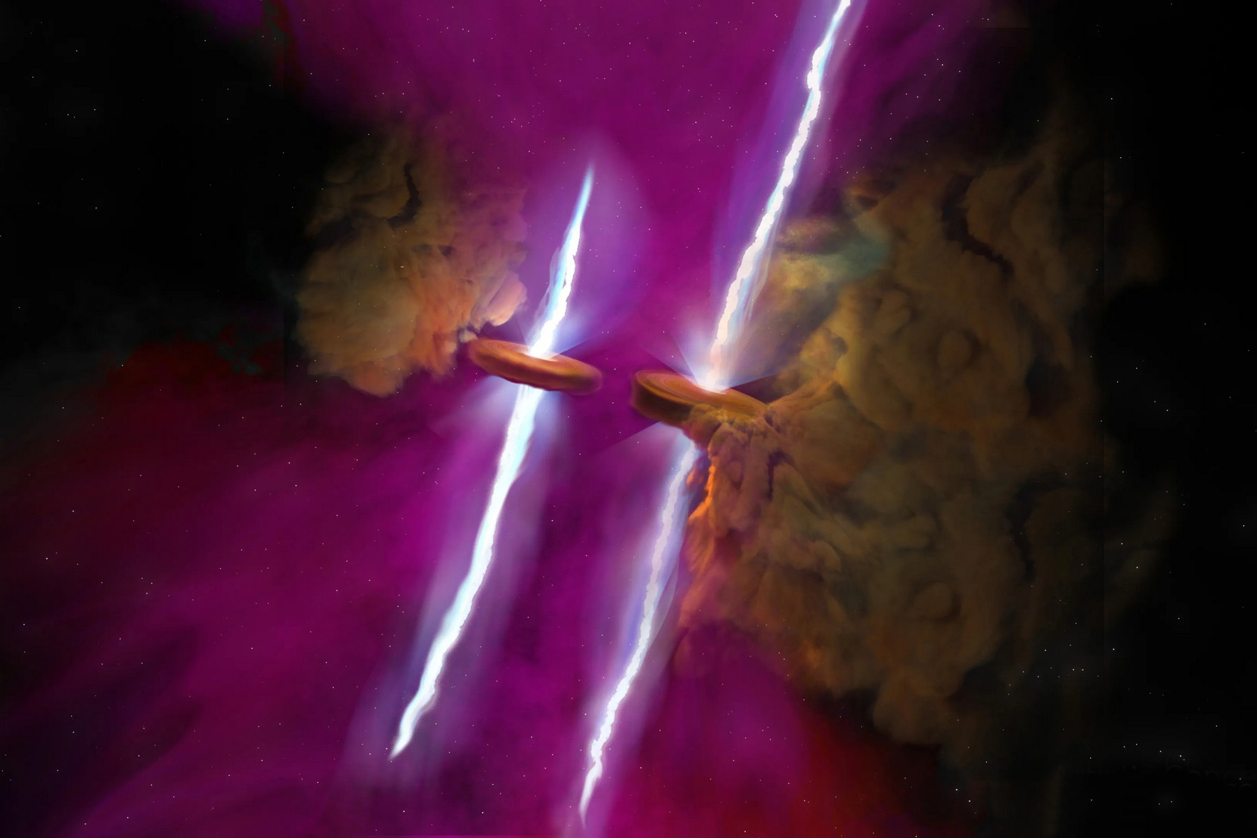 Umělecká vizualizace mladičké dvojhvězdy WL 20S.