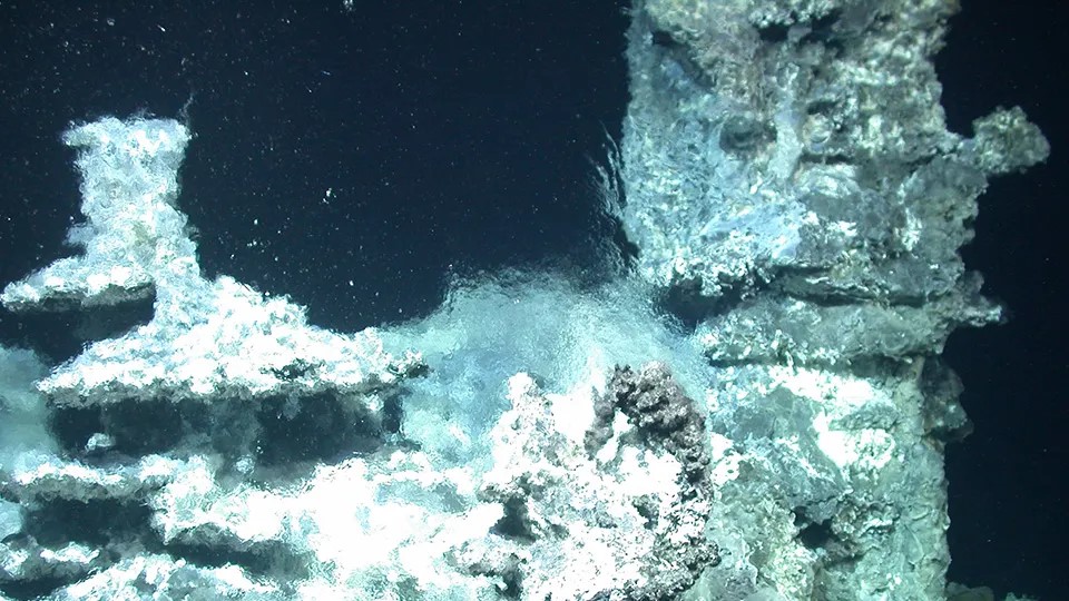 Soustava hydrotermálních průduchů Yggdrasil na poli Jøtul. (foto: MARUM – Center for Marine Environmental Sciences, University of Bremen, CC BY-SA 4.0)