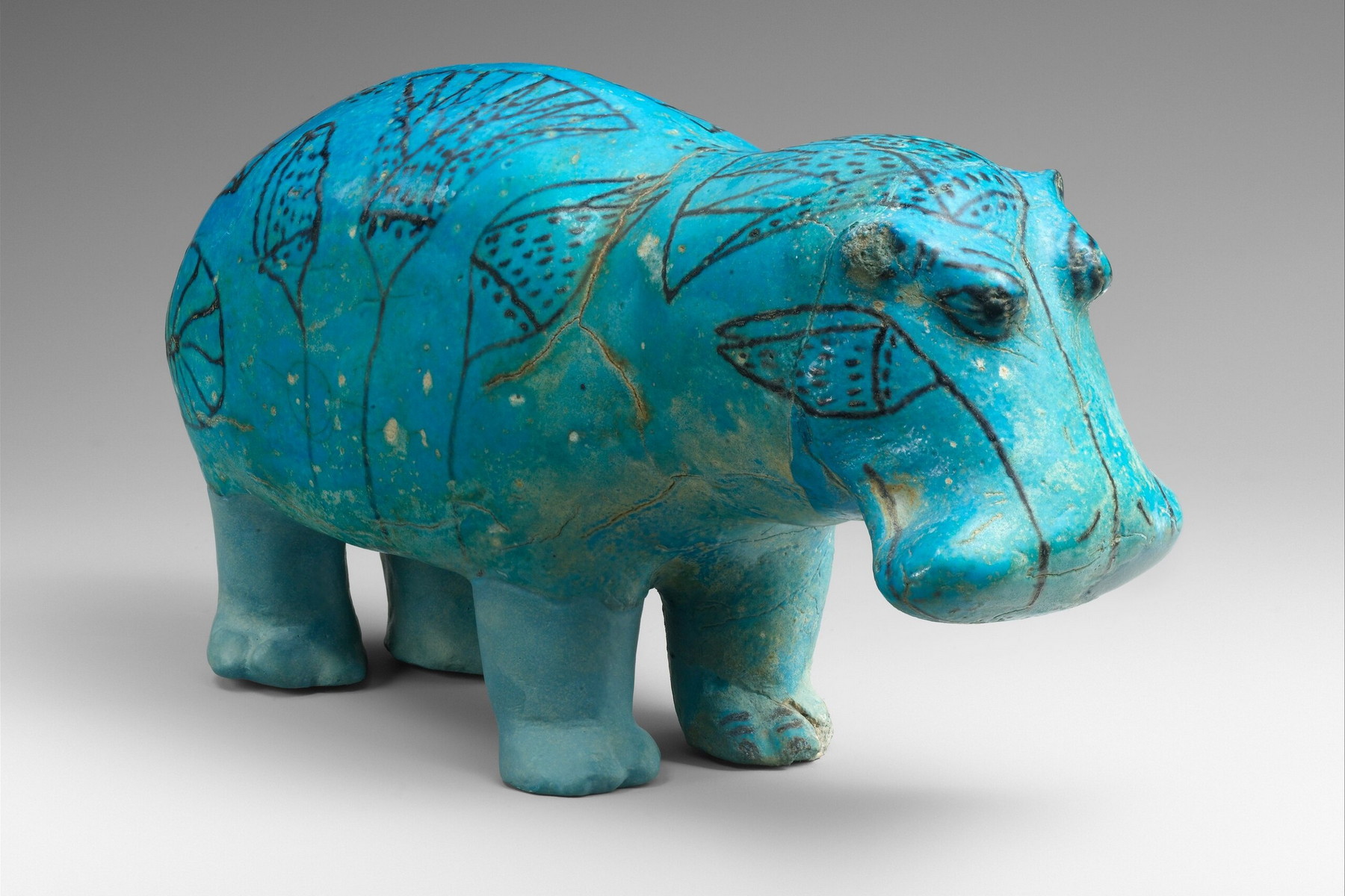 Slavný modrý hroch „William the Hippo.“ Pravá přední noha a obě zadní nohy jsou rekonstruované. (foto: Wikimedia Commons, Metropolitan Museum of Art, CC0 1.0)