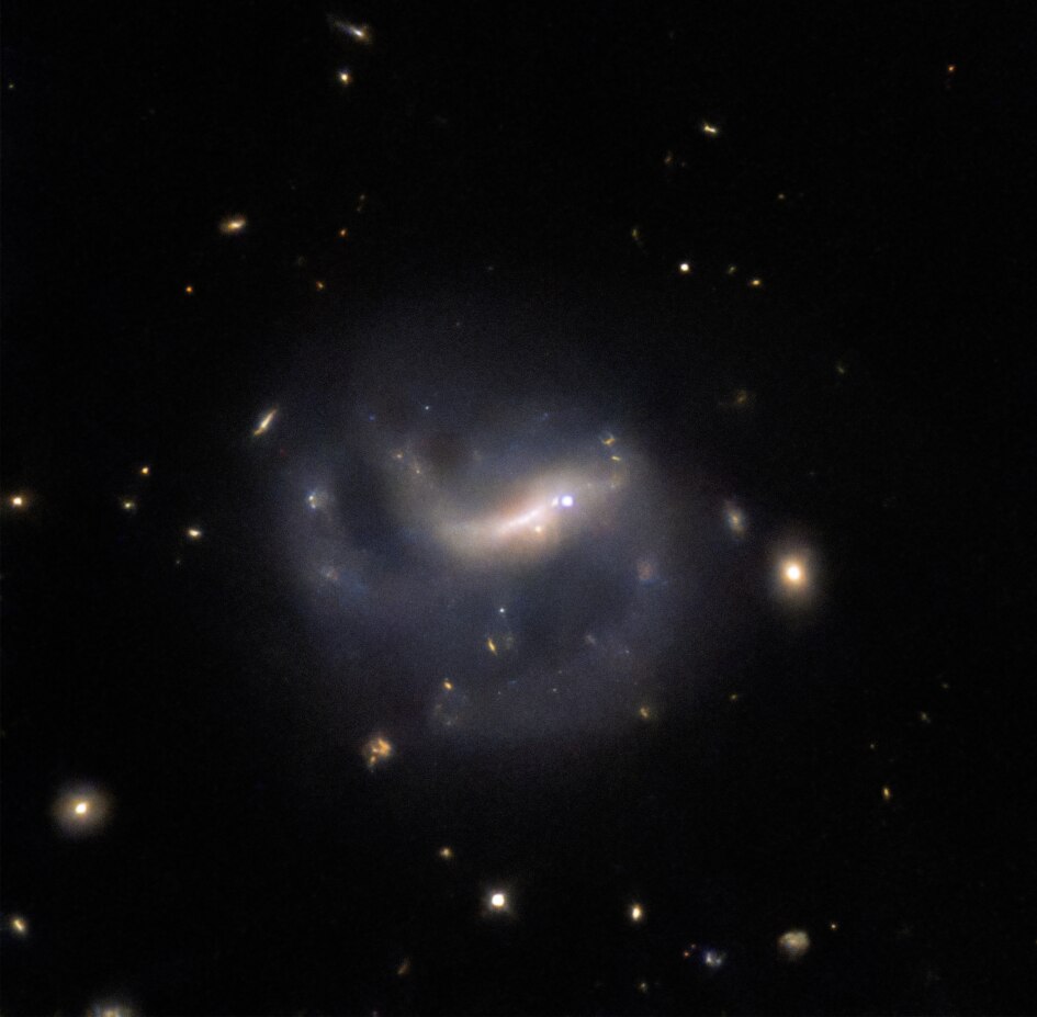 Stále velmi užitečný Hubbleův dalekohled vyfotil galaxii LEDA 857074, v jejíž galaktické příčce explodovala supernova typu Ia. Supernova září v pravé části příčky galaxie. (foto: ESA/Hubble & NASA, R. J. Foley, CC BY-SA 4.0)