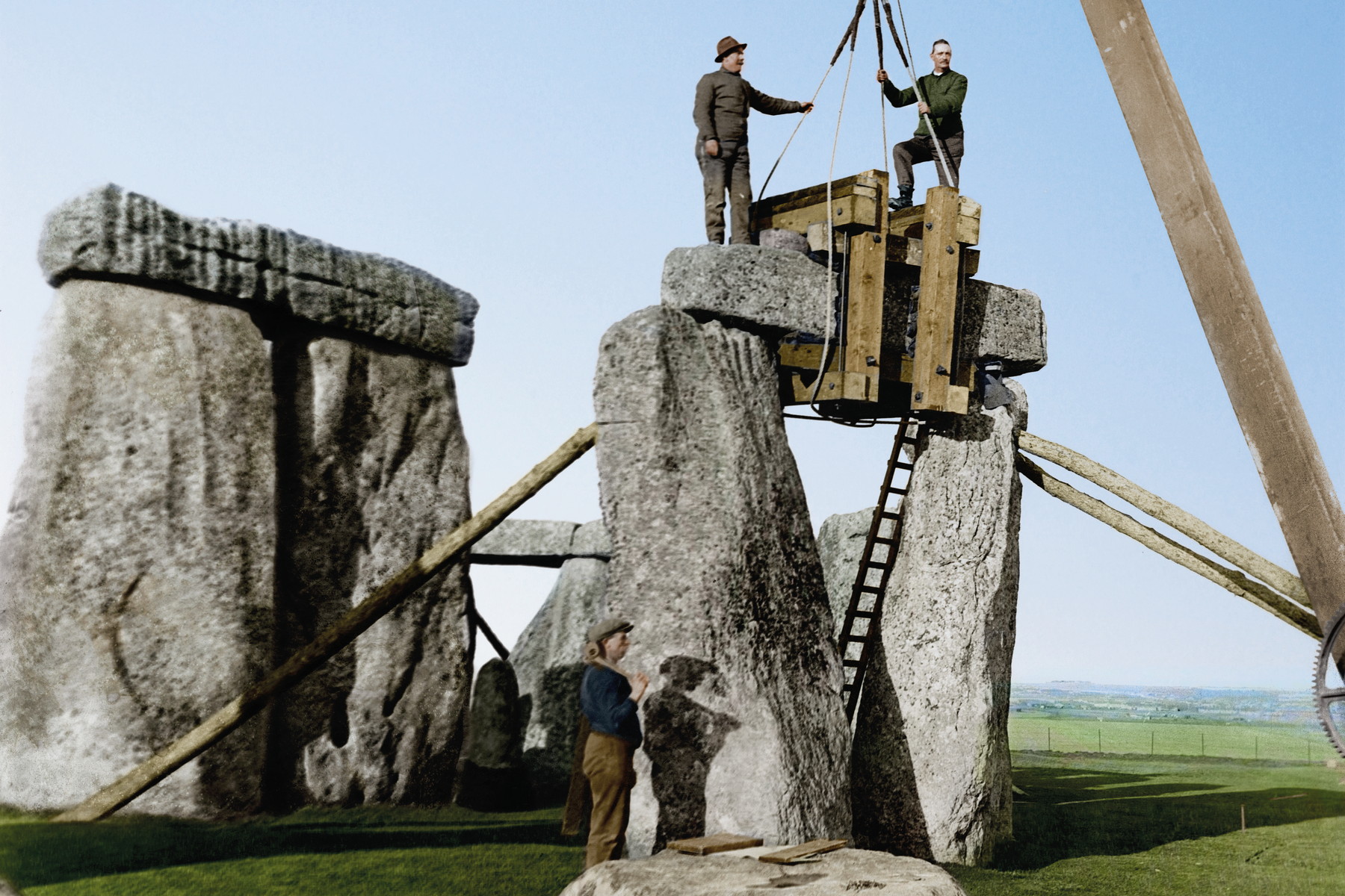 Opravy provedené v roce 1919 vyžadovaly vyzdvižení překladových kamenů a jejich opětovné usazení pomocí jeřábu. (foto: Getty Images)