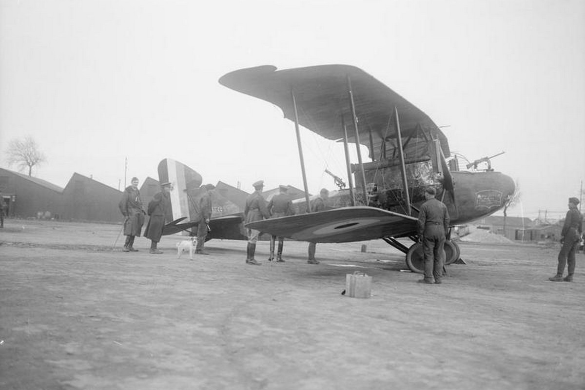 Přeznačený německý bombardovací dvouplošník AEG G.IV na britském aerodromu v Saint Omer, 12. února 1918. (foto: Wikimedia Commons, Imperial War Museums, IWM Non Commercial Licence)