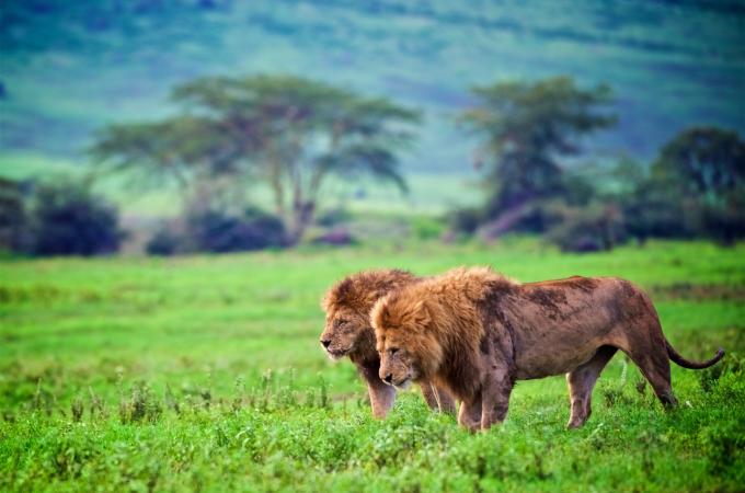 Kráter Ngorongoro je místem s nejvyšší koncentrací volně žijících afrických zvířat