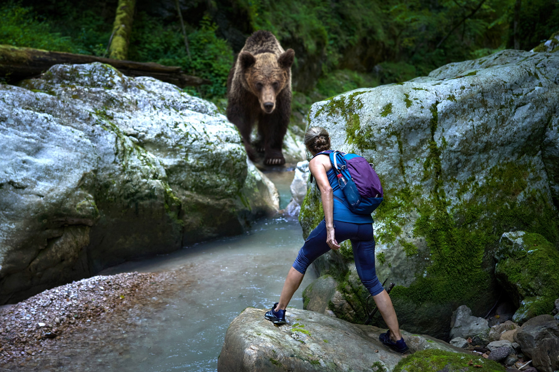 Pokud si vás medvěd všimne, zůstaňte klidně stát a vyvarujte se přímého očního kontaktu. Pokud o vás zvíře neví, potichu ustupujte směrem, odkud jste přišli, a pak ho široce obejděte. (foto: Shutterstock)