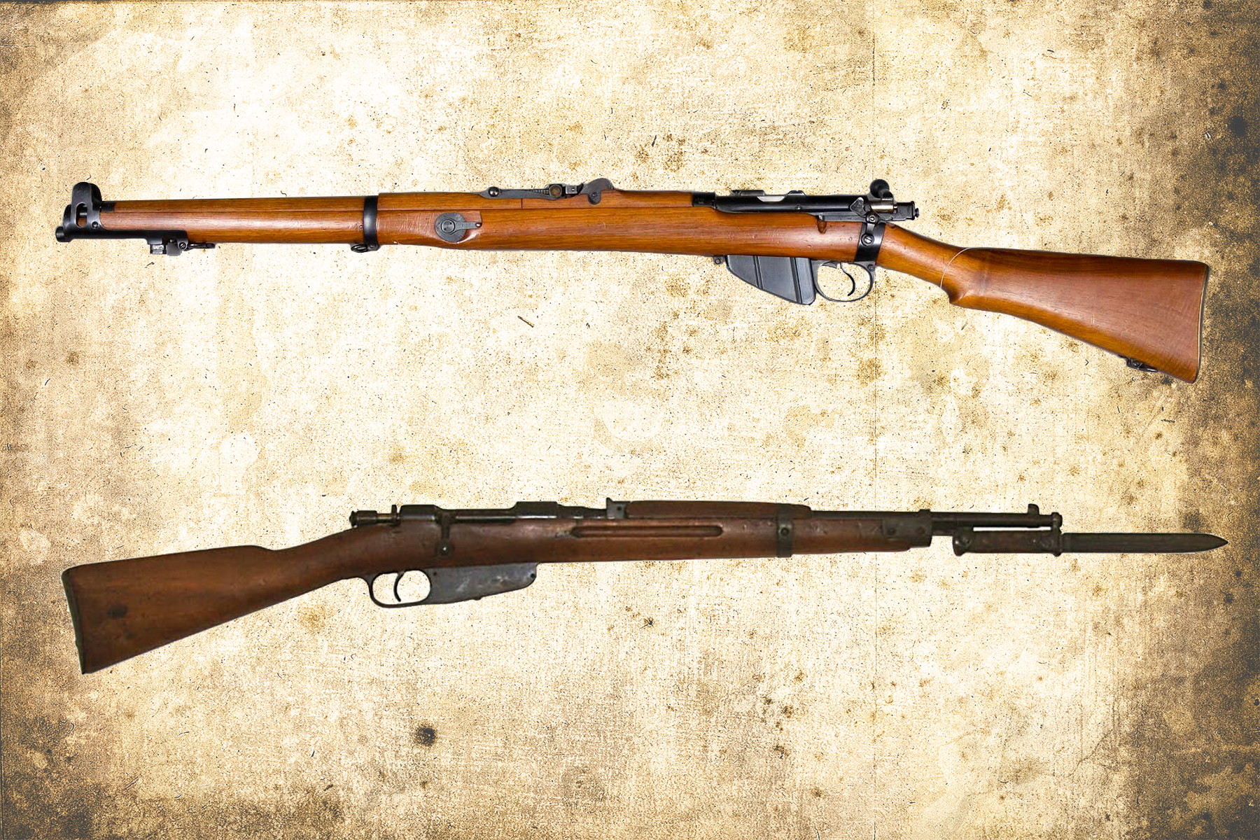 Britská Lee Enfield Mk I. (nahoře) používala náboj 7,7×56 mm, známý také jako .303 British. Pušky Carcano (dole Modello 1891/38) se v rukou soukromých střelců ovědčily daleko lépe než na bojišti. (foto: Wikimedia Commons,PDM 1.0)