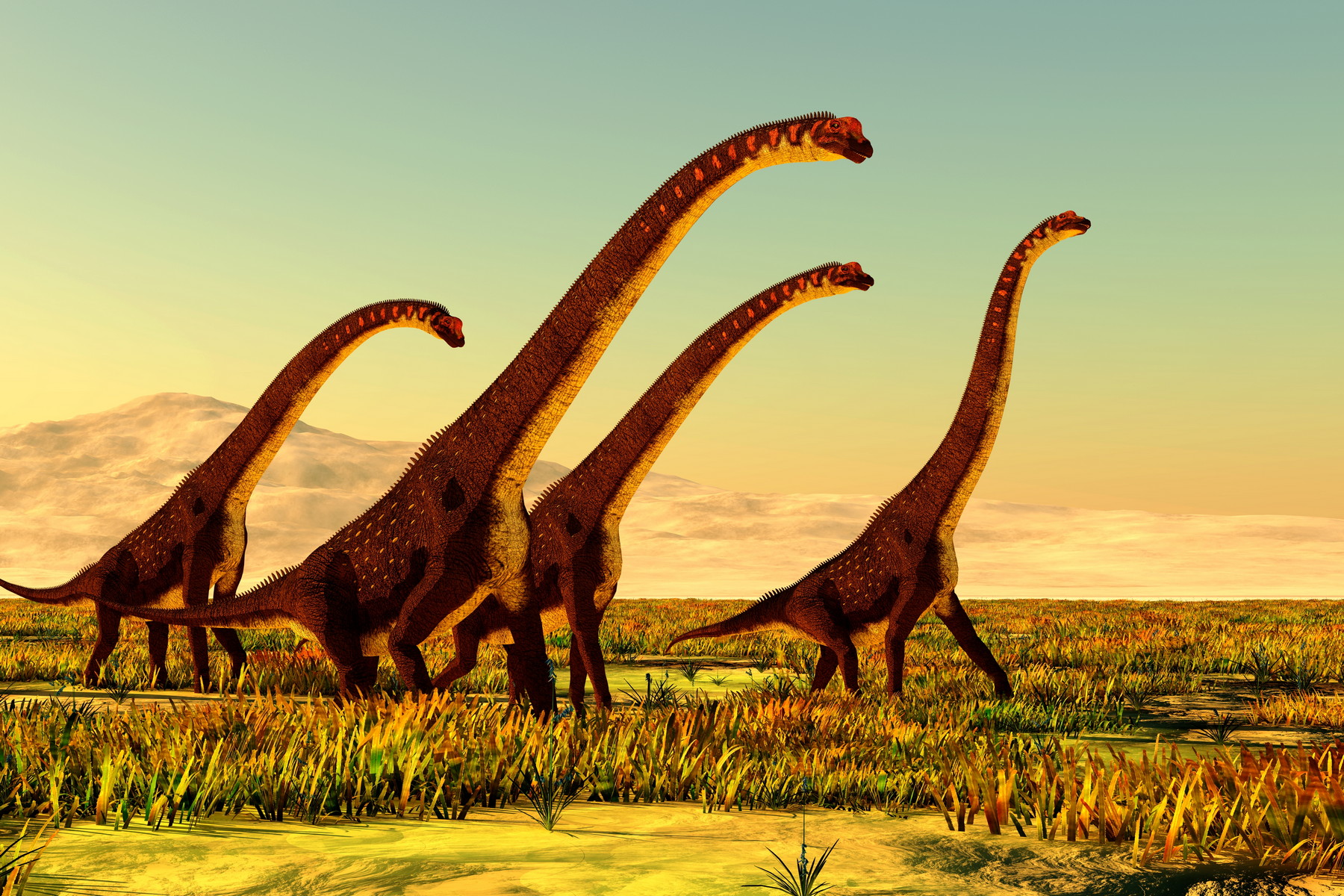 Podle některých starších prací musel žirafatitán denně přijmout až 182 kilogramů rostlinné potravy, dnešní odhady jsou však asi desetkrát nižší. (ilustrace: Shutterstock)