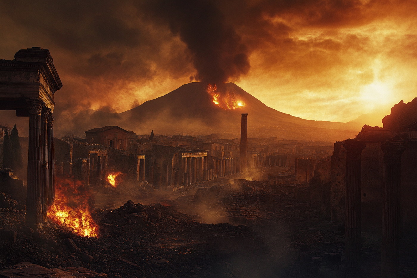 Velká část přeživších obyvatel zničených Pompejí a Herculanea na svou domovinu nezanevřela. (ilustrace: Midjourney AI, PDM 1.0)