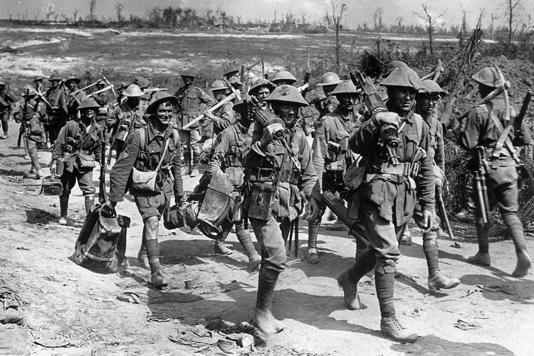 Do výzbroje sil ANZAC patřily i slavné kulomety Vickers, které na tomto snímku z blízkosti fronty nesou Australané. (foto: Wikimedia Commons, Australian War Memorial, PDM 1.0)