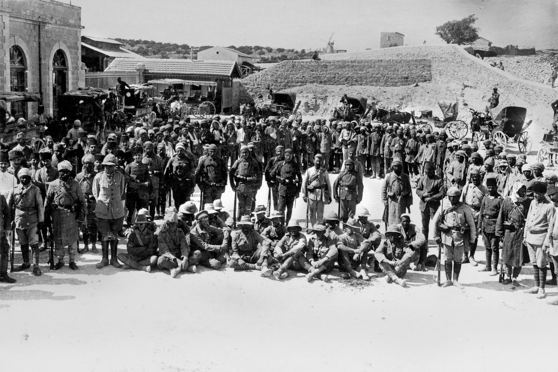 Osmani společně s australskými zajatci po první bitvě u Gazy.