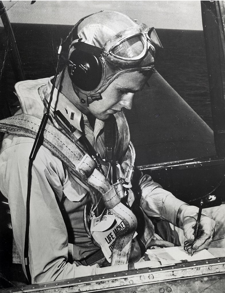 George H. W. Bush v kokpitu stroje Grumman TBM-1C Avenger v roce 1944. (foto: Wikimedia Commons, U.S. Navy, PDM 1.0)
